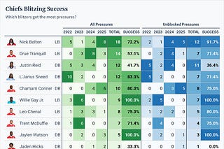 The numbers behind the Chiefs’ disappointing 2025 blitz performance.