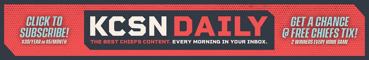 And thanks to our partnership with Tickets For Less, we’re also able to donate a pair of tickets to each Chiefs’ game to a paid subscriber to “KCSN Daily.” We will randomly select a winner earlier in the week and send over the tickets. It’s just that simple.