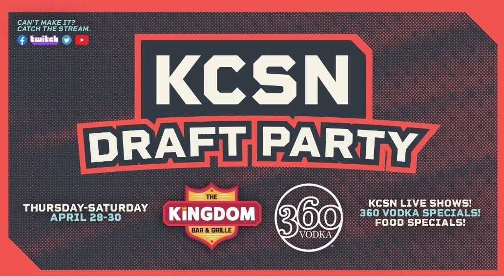 We’re excited to be hosting the KCSN Draft Party April 28th-30th for the entirety of draft weekend at The Kingdom Bar and Grille in Overland Park, KS!