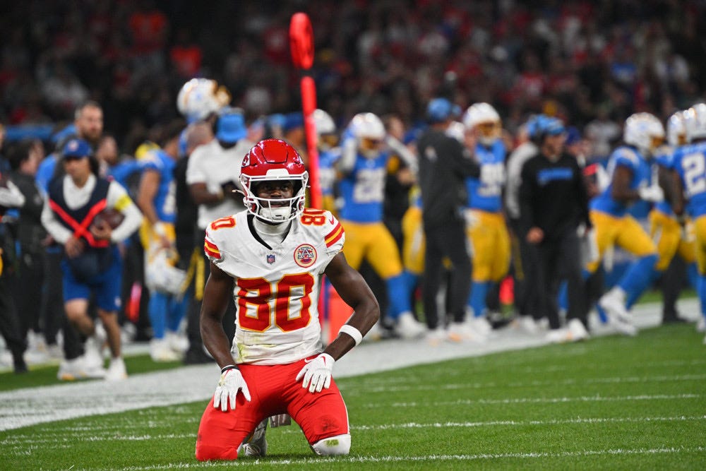 The game, or at least the plans for it, was doomed from the start. Wide receiver Xavier Worthy (shoulder) exited the game and was quickly ruled out after a collision with tight end Travis Kelce on the game's initial third-down attempt.