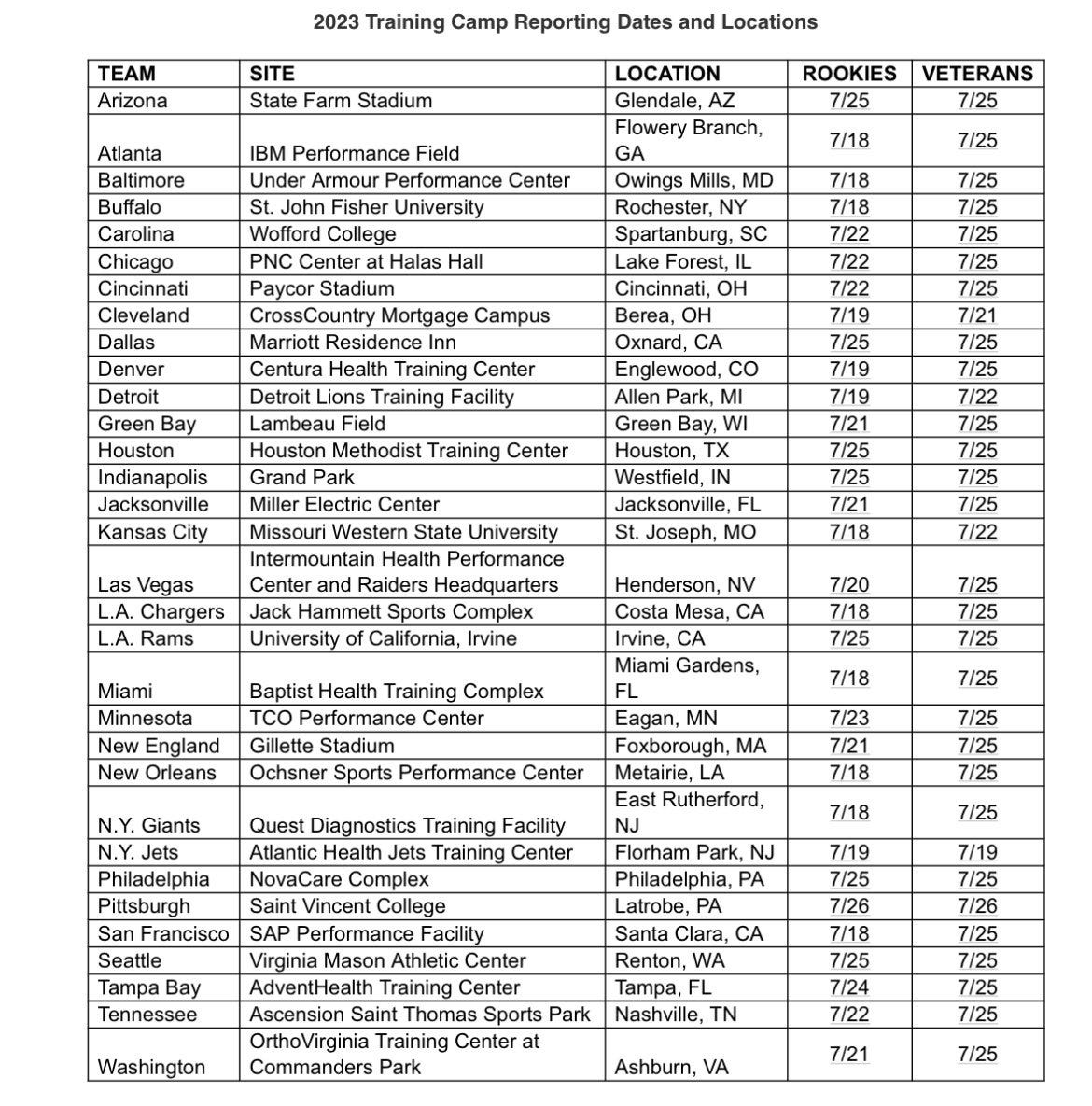 Veterans will also have one of the earliest possible report dates, arriving in St. Joseph, Missouri at Missouri Western State University for training camp on Saturday, July 22. Here’s a look at the report dates for the entire NFL: