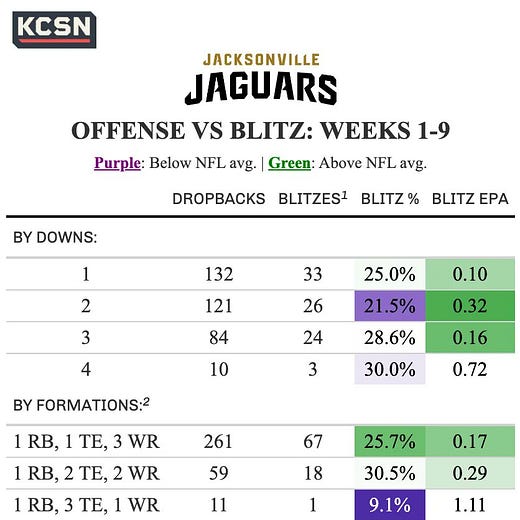 From KCSN: Our stat guru, Joseph Hefner, crunched the numbers to see how the Chiefs offense and Jaguars offense handle the blitz game.