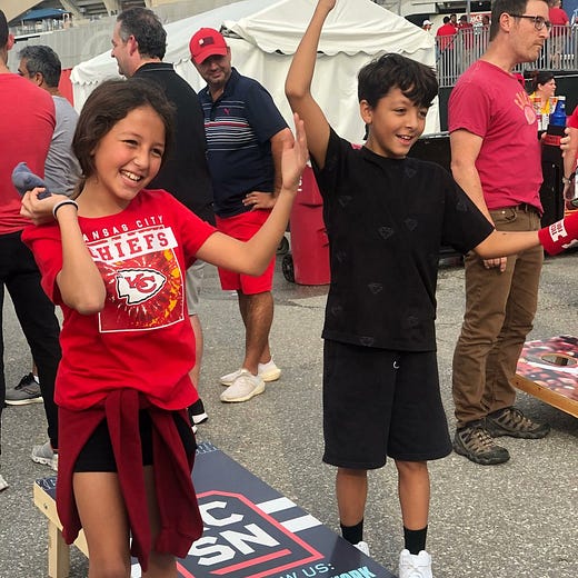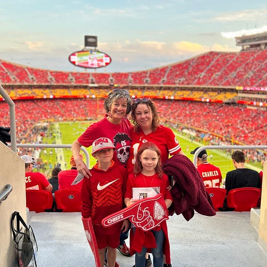 Walking up the ramp to our seats, both Colton and Tessa were in awe of the fun that only Arrowhead can provide. From the sheet metal banging in unison to chanting fans, to the singing of the National Anthem with a collective “Home of the Chiefs” that they weren’t fully prepared for, to the fireworks of every touchdown score from his favorite player Patrick Mahomes, it was a night Colton will always remember for his first game.