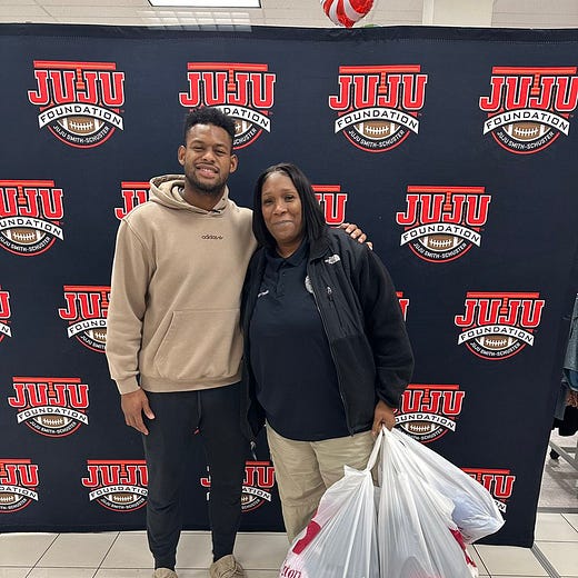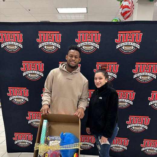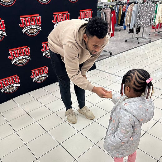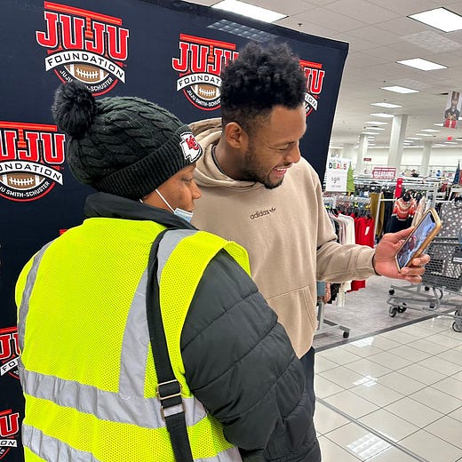 From the JuJu Foundation: Chiefs WR JuJu Smith-Schuster gave back to the Kansas City community recently. His foundation shared images of him paying off nearly $10K in layaway gifts at Burlington in Kansas City.