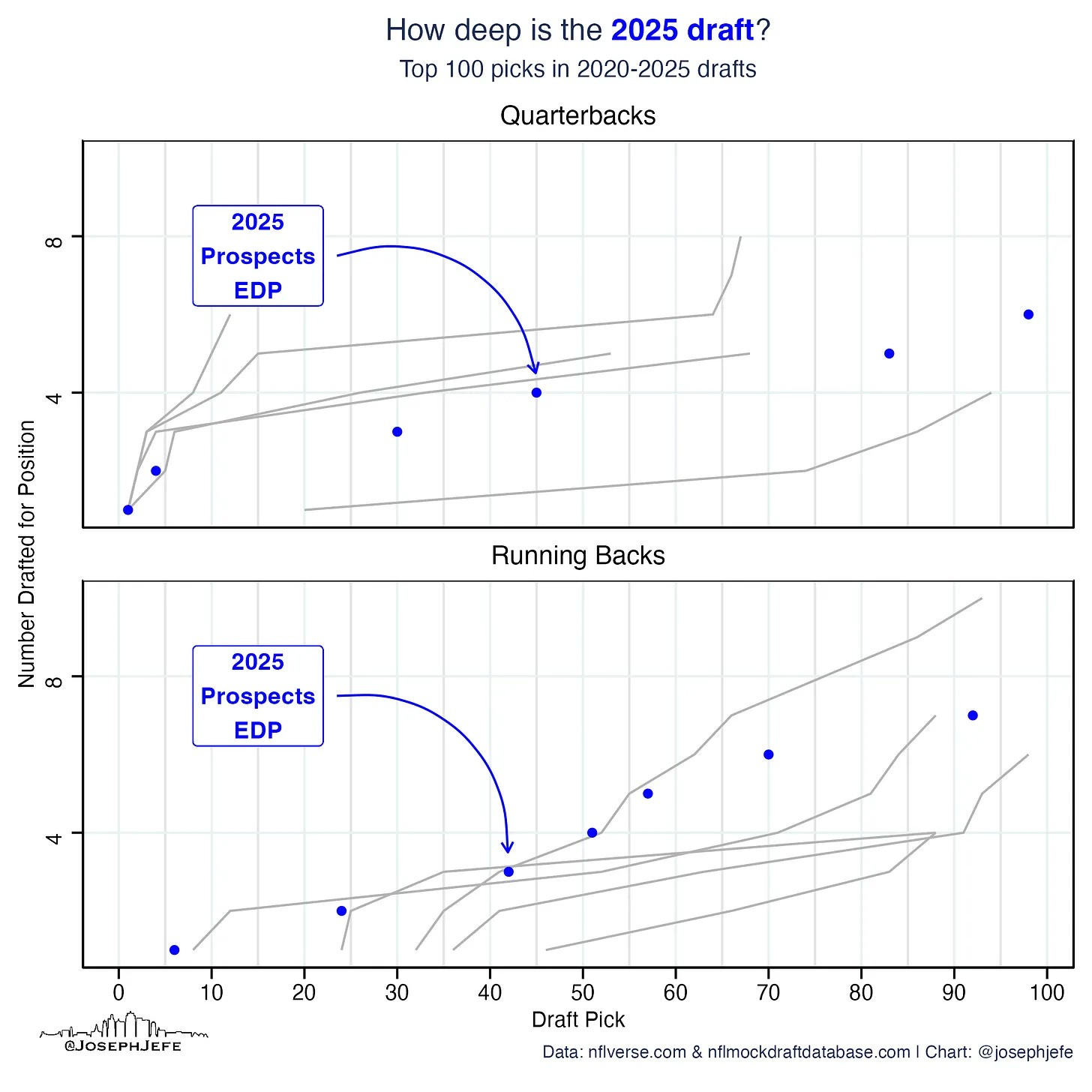 This week Joseph took an incredibly deep dive on just how deep this year’s draft class is. If you want to gauge your expectations on this year’s draft, you will want to give this a read. Check out the full article by clicking the graph above!